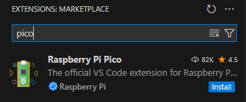 在vscode的扩展商店里面搜索安装Raspberry Pi Pico扩展即可