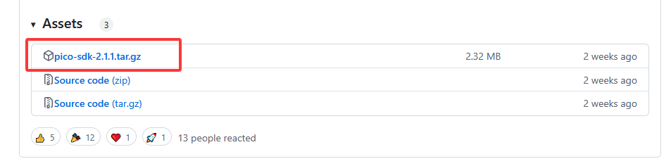 在pico-sdk的github release页面下载pico-sdk-x.x.x.tar.gz,解压