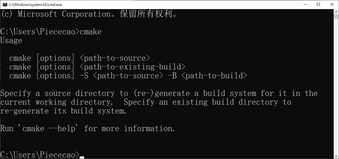 输入cmake,回车