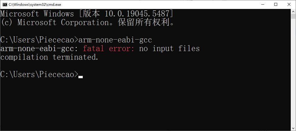 输入arm-none-eabi-gcc,回车